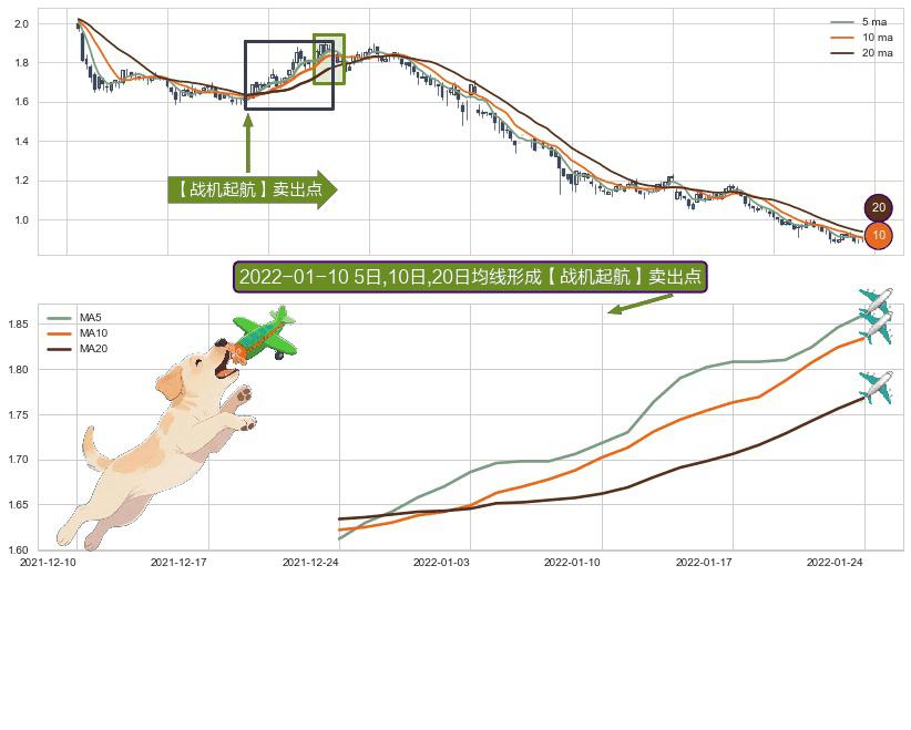 ⚀ 2021-12-24日-2022-01-24日显现 5日-10日-20日均线 【战机起航】卖出点 看空信号,后市看跌,卖出