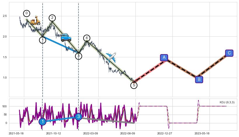 ➣ 第三驱动浪【动能】:🚙 86.70%, 是3个下跌浪中【中等】动能