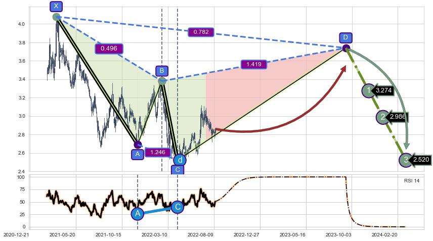 ➣ D点拟合预测价格3.740,距离最后交易收盘价格2.860相差 +30.77%
