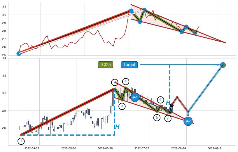 ➢ 【买1】: 激进型 买点 →(2022-08-11: 2.795 )形成突破降🚩楔型【整理】形态