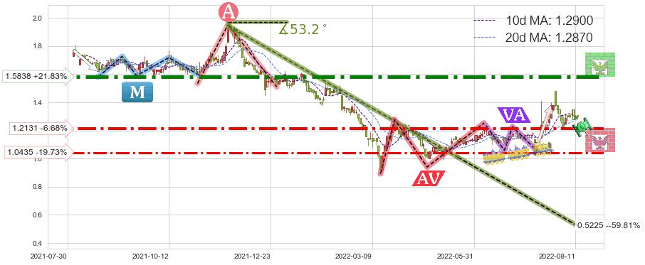♘ 阻力价格位1.5838,可信任强度94.41%,距离最后交易2022-08-12形成的收盘价格1.3000相差 +21.83%