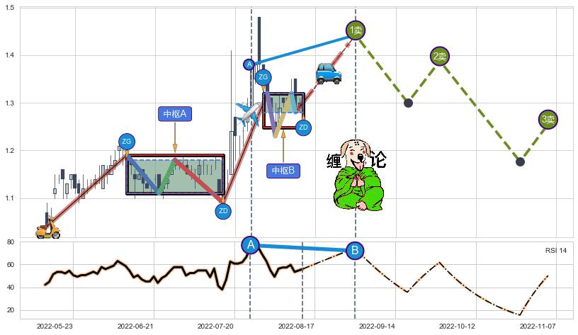 ➣ 【未完成】缠论 起点:2022-05-12, 完成第1中枢A,完成第2中枢B,到达2022-08-12