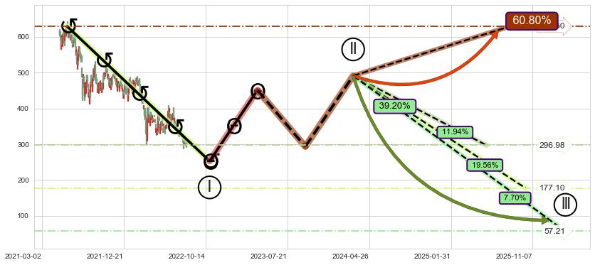 ➣ 【仅预测突破】最后价格:304.20与预测突破价格:323.81→【空间临近】后续最小【整理】第一目标价格→(2022-11-08: 639.61 )