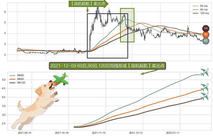 ⚀ 2021-10-21日-2022-01-27日显现 60日-90日-120日均线 【战机起航】卖出点 看空信号,后市看跌,卖出