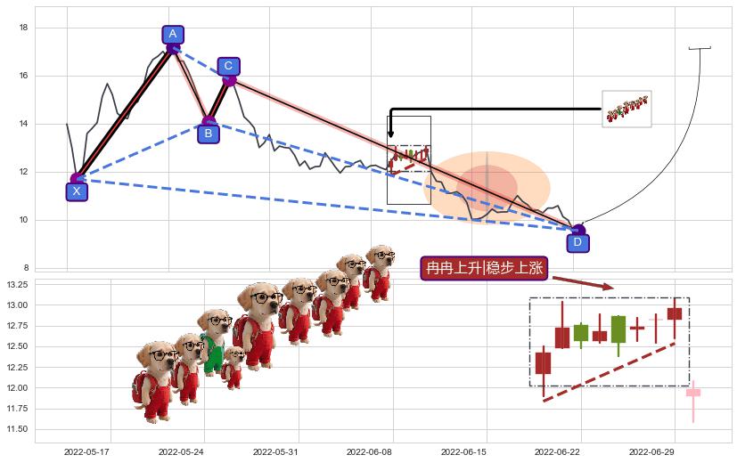 ➣ 已完成【螃蟹】形态起点X: 2022-03-15, 终点D: 2022-08-11, 共100交易日