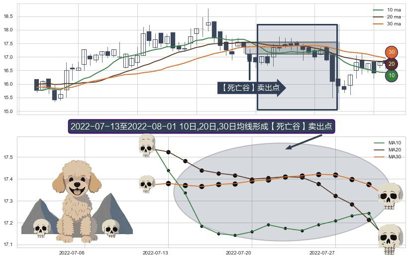 ⚀ 2022-07-14-日至2022-08-01-日显现 10日-20日-30日均线 【死亡谷】卖出点 看空信号,后市看跌,卖出