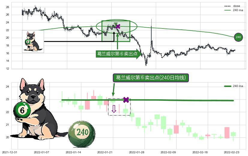 ⚀ 2022-01-21-日显现 葛兰威尔均线 240日均线 第⑥卖出点 走势反转见顶信号,后市看跌,卖出信号