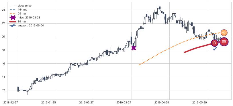上涨趋势2018-12-27-2019-06-10,均线89确认关键支撑1处