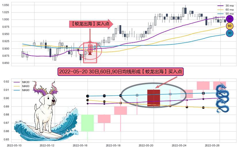 ⚀ 2022-05-20日显现 30日-60日-90日均线 【蛟龙出海】买入点 看多信号,后市看涨,买入