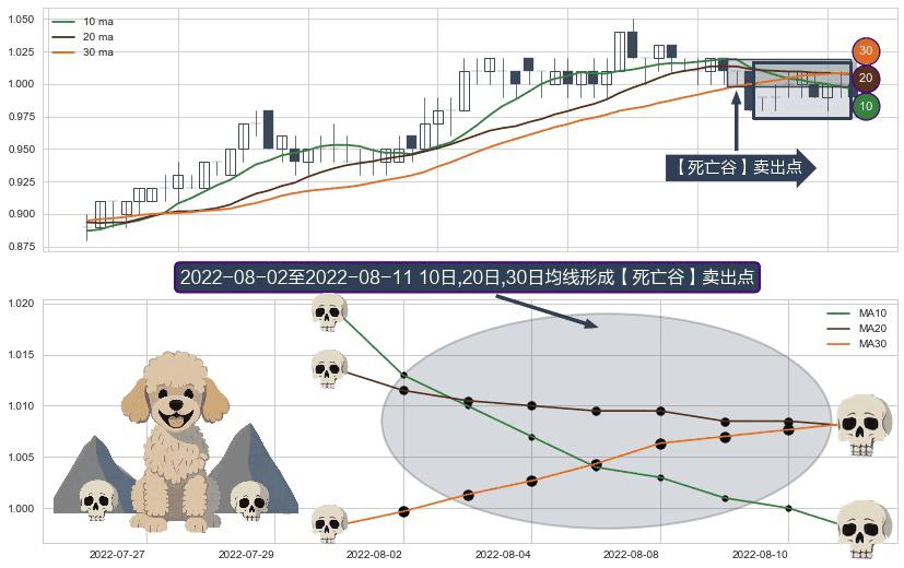 ⚀ 2022-08-03-日至2022-08-11-日显现 10日-20日-30日均线 【死亡谷】卖出点 看空信号,后市看跌,卖出