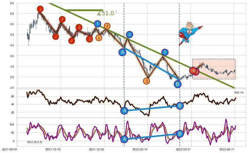 ♘ 阻力价格位4.54,可信任强度90.54%,距离最后交易2022-08-12形成的收盘价格2.820相差 +60.98%