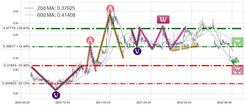 ♘ 阻力价格位0.39917,可信任强度64.91%,距离最后交易2022-08-12形成的收盘价格0.35500相差 +12.44%