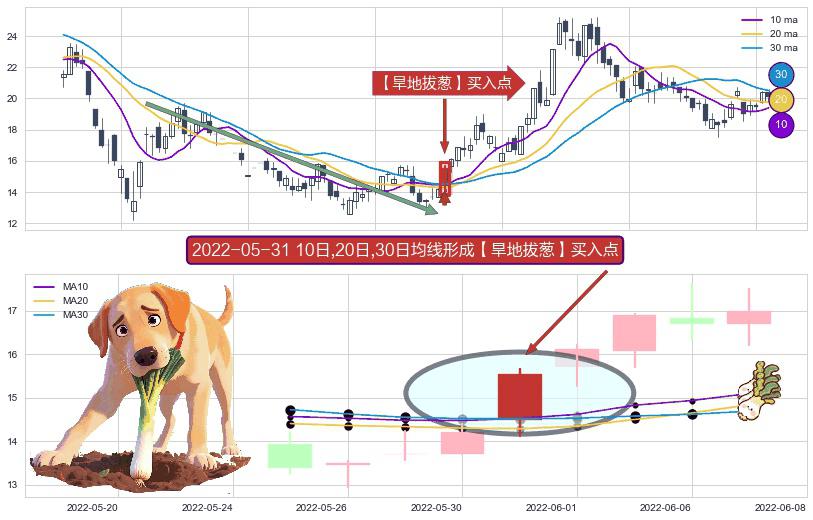 ⚀ 2022-05-31日显现 10日-20日-30日均线 【旱地拔葱】买入点 看多信号,后市看涨,买入
