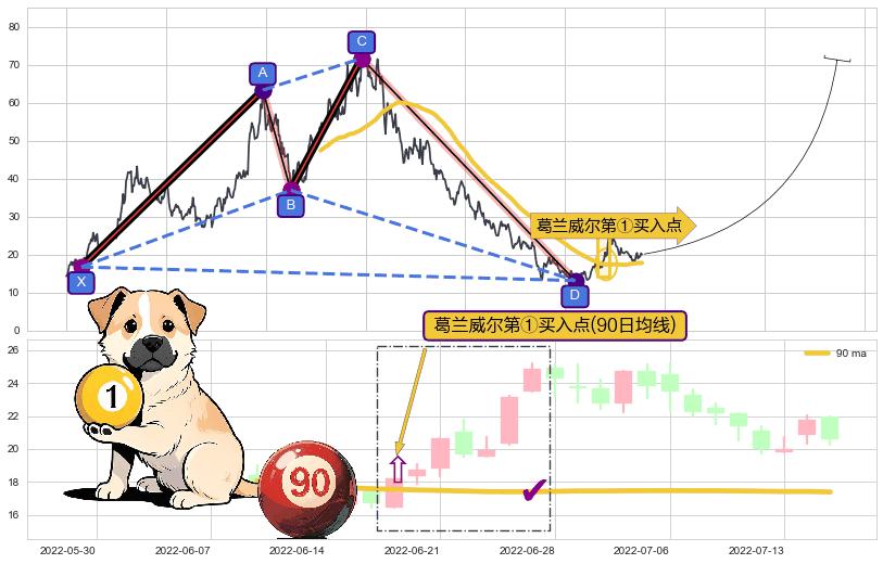 | 3 🅚:葛兰威尔第③买入点 ➕ 📡:谐波鲨鱼已到达d点:猜想c下行到达d点后报复性拉升上涨(均值回复) ☞ 看多信号 ⇥ 【均线】交织【图形】⇥ 综合量化分数: 52 | > |