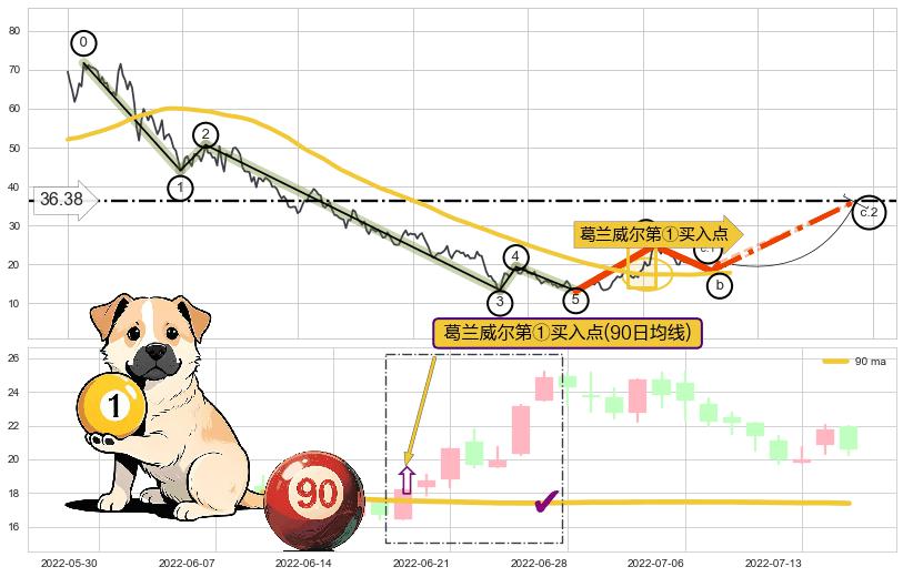 ➢ 智能识别已发生事件:缠论第一类买点【买❶】→(2022-03-15: 13.44 )