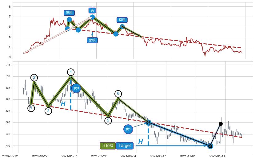 ➢ 【卖1】: 激进型 卖点→(2021-07-06: 5.00 )形成突破头肩顶【反转】形态