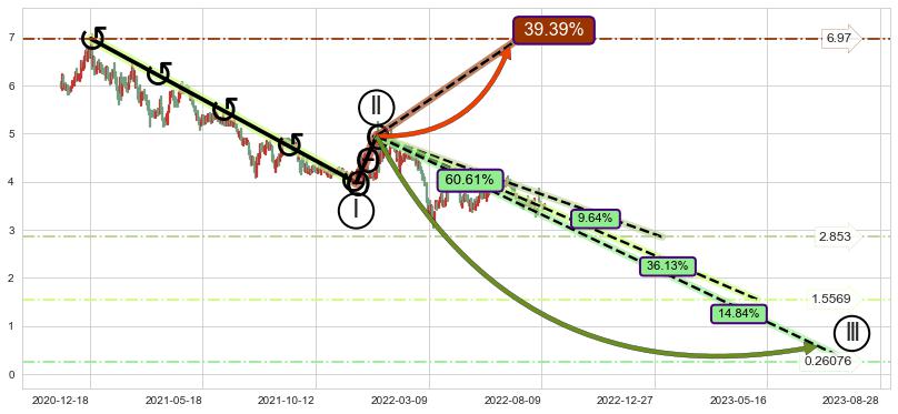 ➣ 大趋势循环浪继续向下概率60.61%