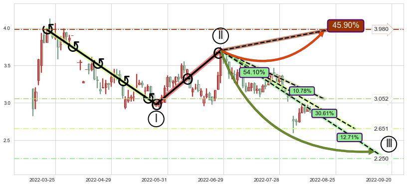 ➣ 循环浪继续向下【平均值】位置(2022-09-05, 2.651),匹配聚类样本比例56.57%, 可能性概率30.61%