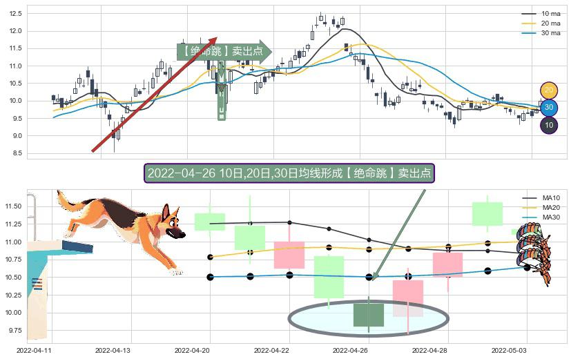 形态多维评估: ⚀ 2022-04-26日显现 10日-20日-30日均线 【绝命跳】卖出点 看空信号,后市看跌,卖出
