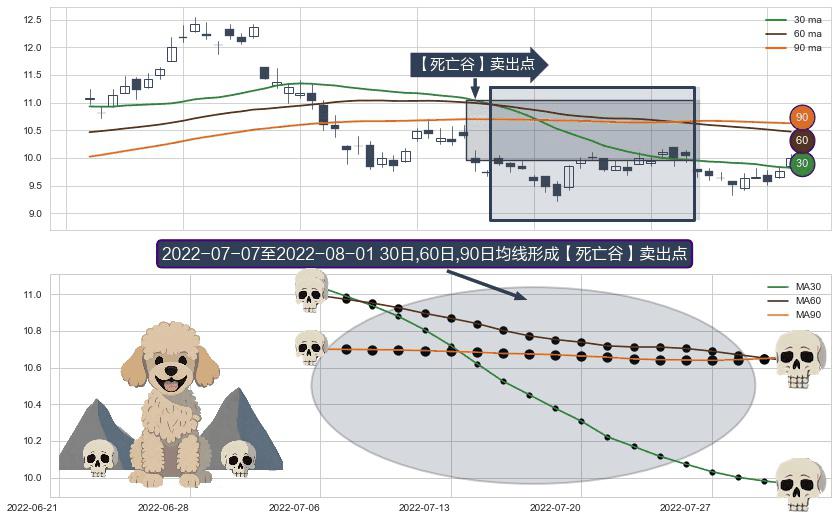 形态多维评估: ⚀ 2022-07-08-日至2022-08-01-日显现 30日-60日-90日均线 【死亡谷】卖出点 看空信号,后市看跌,卖出