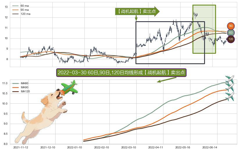形态多维评估: ⚀ 2022-01-11日-2022-06-23日显现 60日-90日-120日均线 【战机起航】卖出点 看空信号,后市看跌,卖出