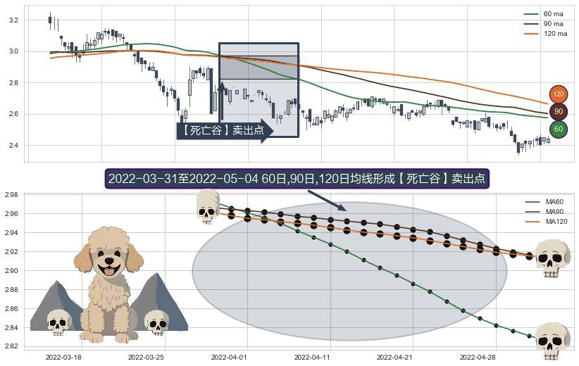 形态多维评估: ⚀ 2022-04-01-日至2022-05-04-日显现 60日-90日-120日均线 【死亡谷】卖出点 看空信号,后市看跌,卖出
