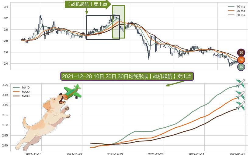 形态多维评估: ⚀ 2021-12-01日-2022-01-21日显现 10日-20日-30日均线 【战机起航】卖出点 看空信号,后市看跌,卖出