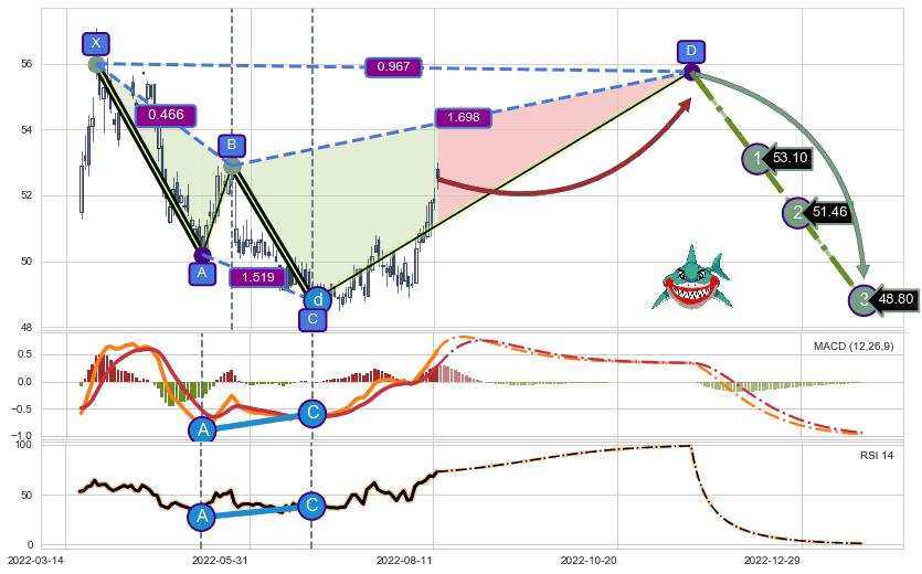 ➣ 未完成【鲨鱼】形态起点X: 2022-03-24, 已到达C点: 2022-06-24, 预测最终D点: 2022-11-17, 共163交易日