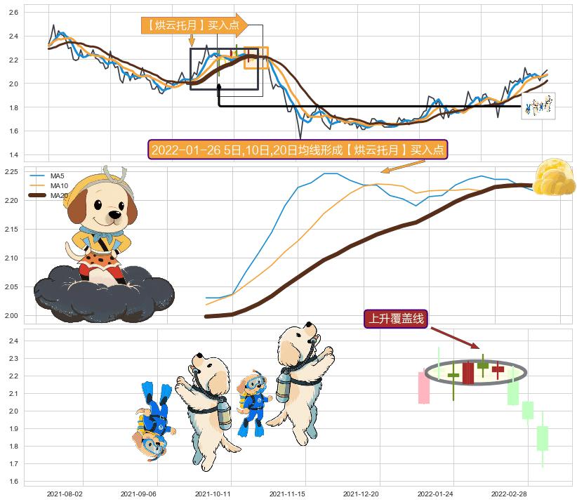 | 5 🅚:上涨两颗星 | 上涨三颗星 ➕ 🎢:【金蜘蛛】买入点均线组合买入点信号形成后,猜想三条均线周期内的交易者都看好后市,持续上涨 ☞ 看多信号 ⇥ 【均线】交织【🅚线】⇥ 综合量化分数: 51 | > |
