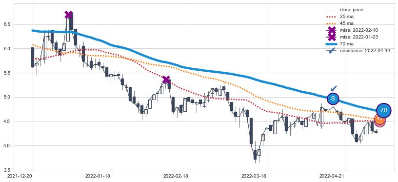 下跌趋势2021-12-20-2022-05-04,均线70确认关键阻力1处