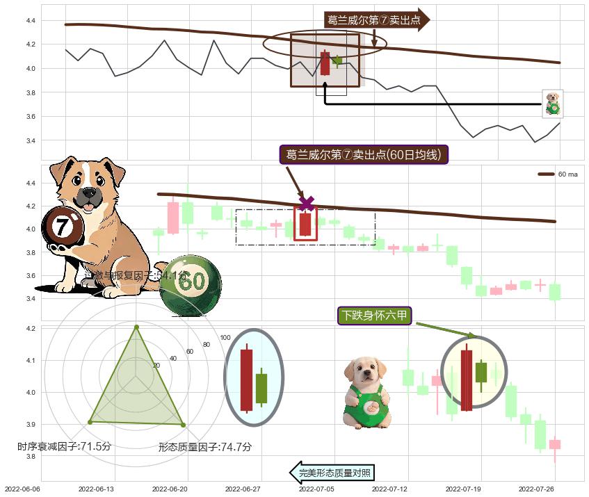 | 7 🅚:下跌两颗星 | 下跌三颗星 ➕ 🎢:【死亡谷】卖出点均线组合卖出点信号形成后,猜想后续破位下跌,沿着向下的尖头三角下跌 ☞ 看空信号 ⇥ 【均线】交织【🅚线】⇥ 综合量化分数: 41 | > |