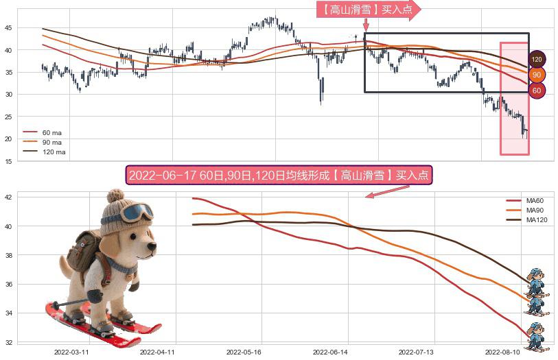 形态多维评估: ⚀ 2022-04-20日-2022-08-12日显现 60日-90日-120日均线 【高山滑雪】买入点 看多信号,后市看涨,买入