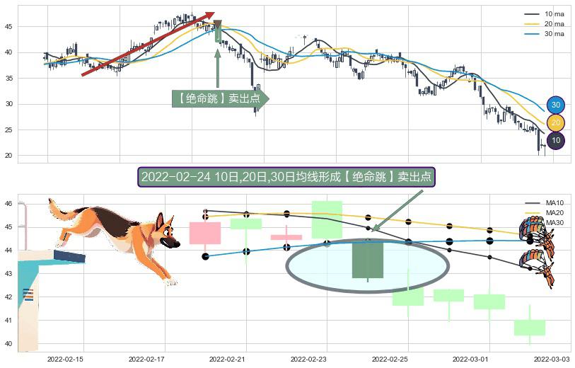 形态多维评估: ⚀ 2022-02-24日显现 10日-20日-30日均线 【绝命跳】卖出点 看空信号,后市看跌,卖出