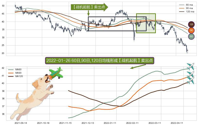 形态多维评估: ⚀ 2021-11-10日-2022-04-20日显现 60日-90日-120日均线 【战机起航】卖出点 看空信号,后市看跌,卖出