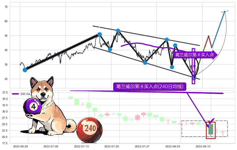 ➣ D点拟合预测价格13.43,距离最后交易收盘价格22.05相差 -39.08%