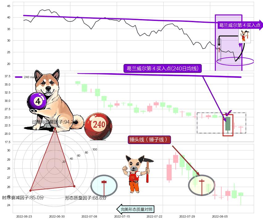 | 2 🅚:看涨(低位)倒锤头线 ➕ 🎢:葛兰威尔第④买入点买入点信号形成后,猜想后续走势持续反弹上升(均值回复) ☞ 看多信号 ⇥ 【均线】交织【🅚线】⇥ 综合量化分数: 51 | > |