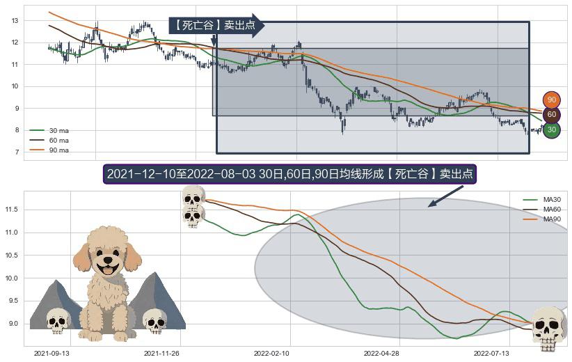 形态多维评估: ⚀ 2021-12-13-日至2022-08-03-日显现 30日-60日-90日均线 【死亡谷】卖出点 看空信号,后市看跌,卖出
