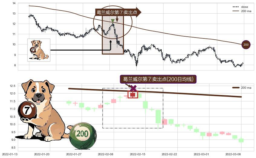 形态多维评估: ⚀ 2022-02-11-日显现 葛兰威尔均线 200日均线 第⑦卖出点 下降趋势的中继信号,后市看跌,卖出信号