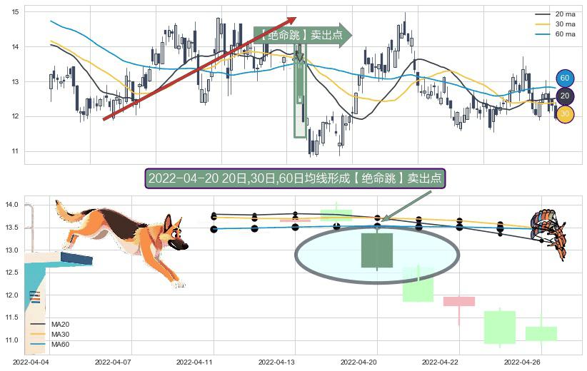 ⚀ 2022-04-20日显现 20日-30日-60日均线 【绝命跳】卖出点 看空信号,后市看跌,卖出