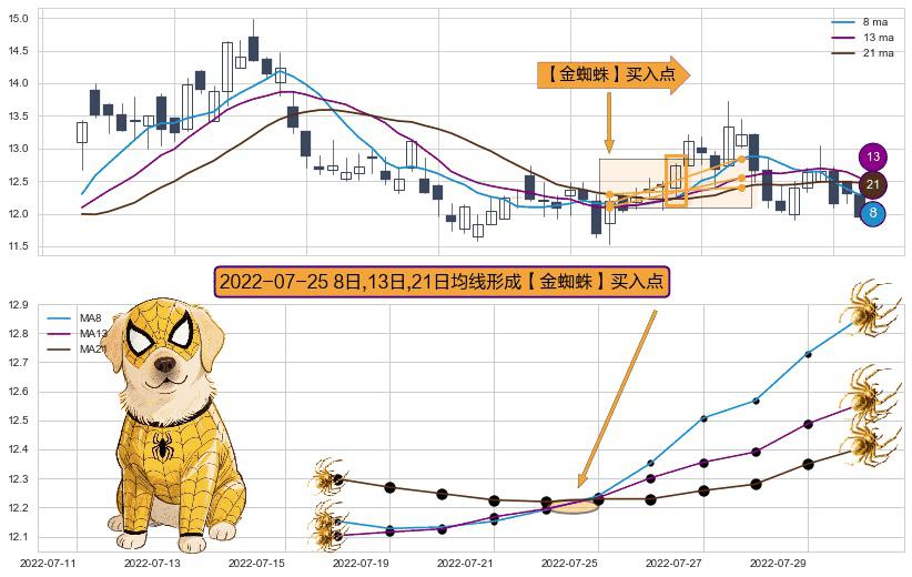 ⚀ 2022-07-25日显现 8日-13日-21日均线 【金蜘蛛】买入点 看多信号,后市看涨,买入