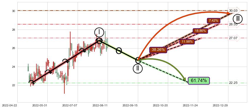 ➣ D点拟合预测价格32.31,距离最后交易收盘价格26.30相差 +22.84%