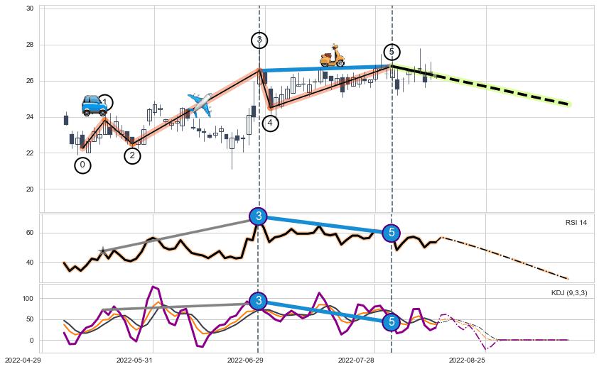 ➣ AI预测: 假定反转启动后, 第❸目标位置(2023-05-11, 21.10)