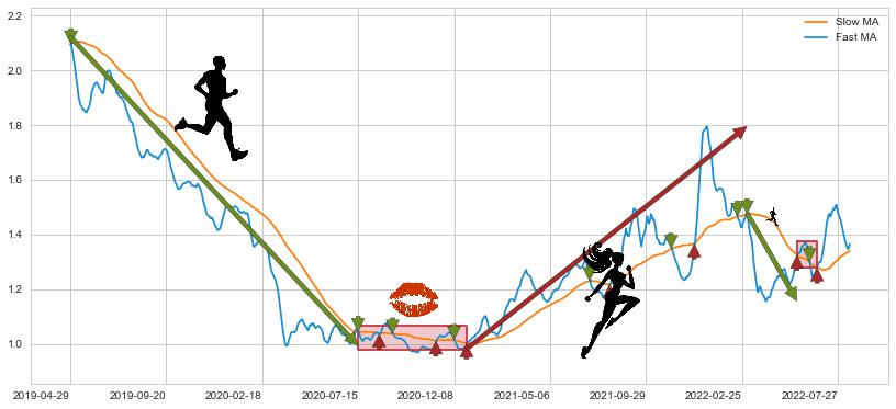 2022-03-04至2022-05-25 慢线与快线呈空头排列, 慢线与快线接触少,无缠绕