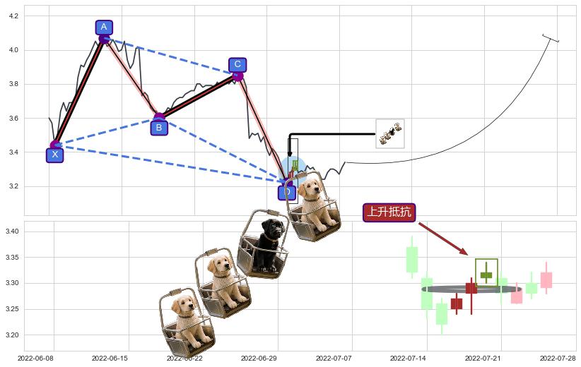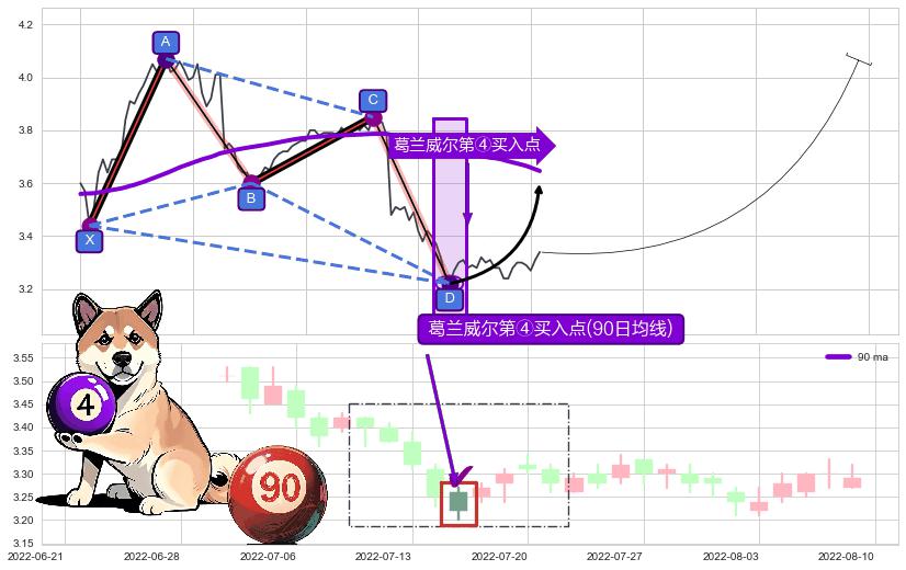 ➣ D点拟合预测价格3.399,距离最后交易收盘价格3.340相差 +1.78%