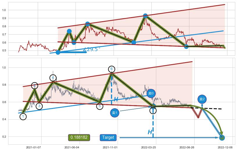 ➣ 最小反转跌幅→𝐇: 0.32101 (头部与颈线垂直距离)