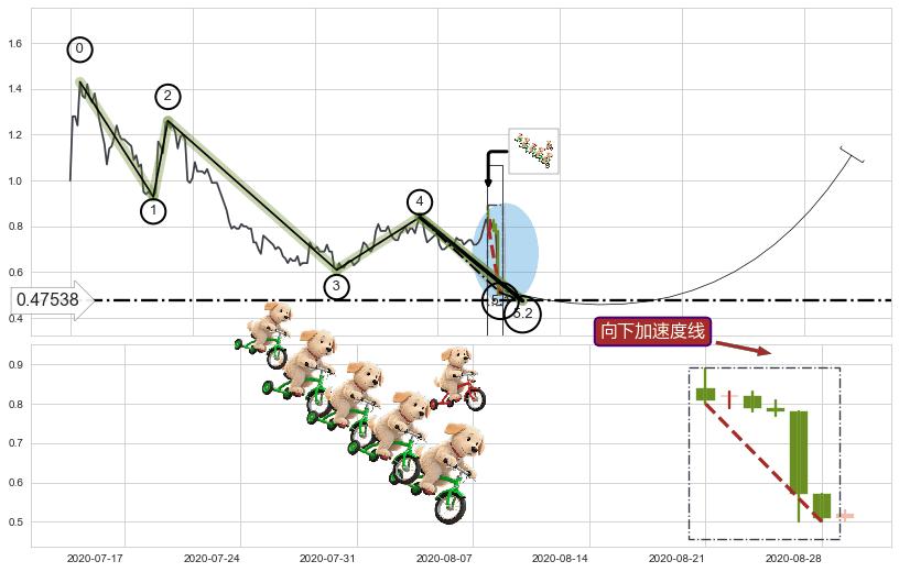 ➣ 5.1: 预测当前第5浪位置(2020-08-28, 0.5100),仍然有下跌空间