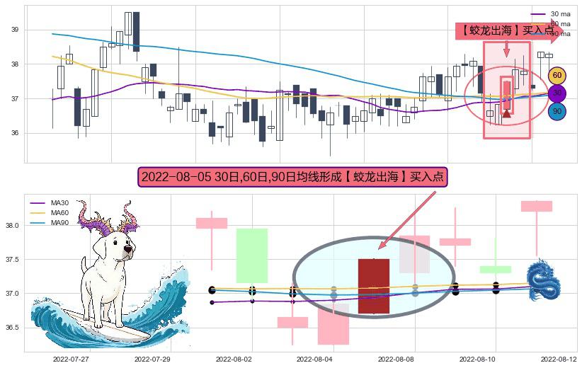 ⚀ 2022-08-05日显现 30日-60日-90日均线 【蛟龙出海】买入点 看多信号,后市看涨,买入