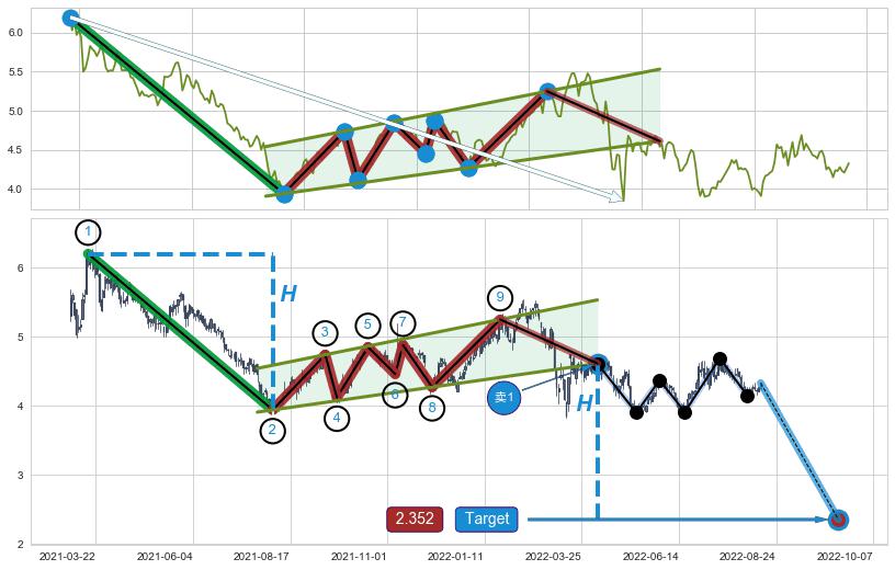 ➣ 最小中继整理跌幅→𝐇: 2.260 (𝐇旗杆的长度:旗杆起点→顶点)