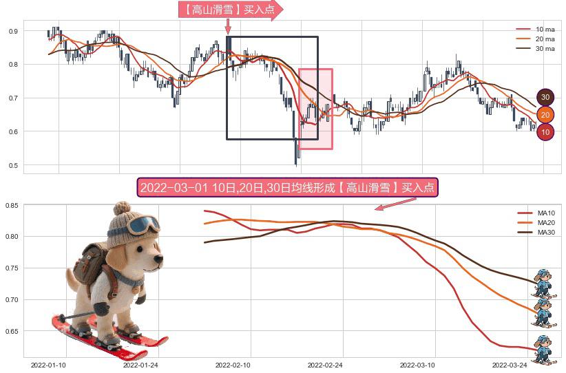 形态多维评估: ⚀ 2022-01-31日-2022-03-25日显现 10日-20日-30日均线 【高山滑雪】买入点 看多信号,后市看涨,买入