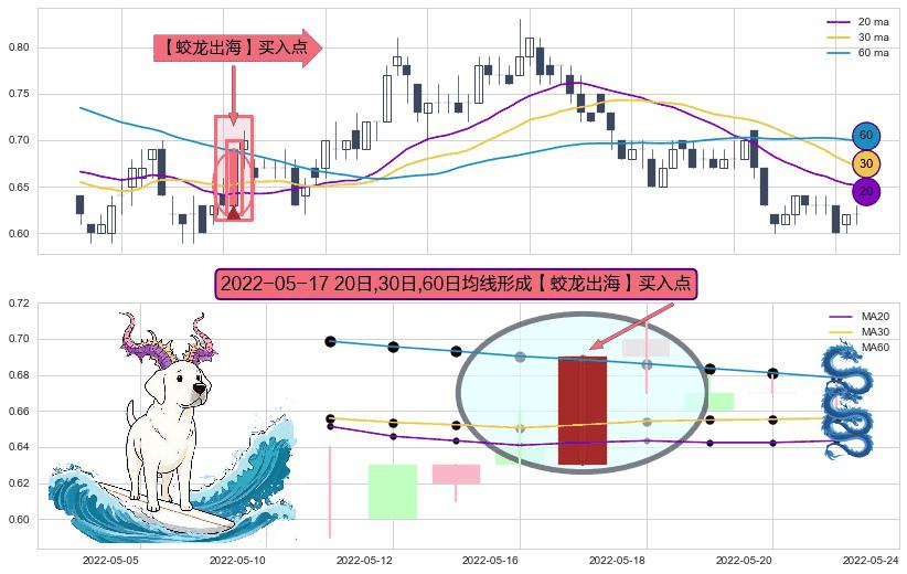 形态多维评估: ⚀ 2022-05-17日显现 20日-30日-60日均线 【蛟龙出海】买入点 看多信号,后市看涨,买入